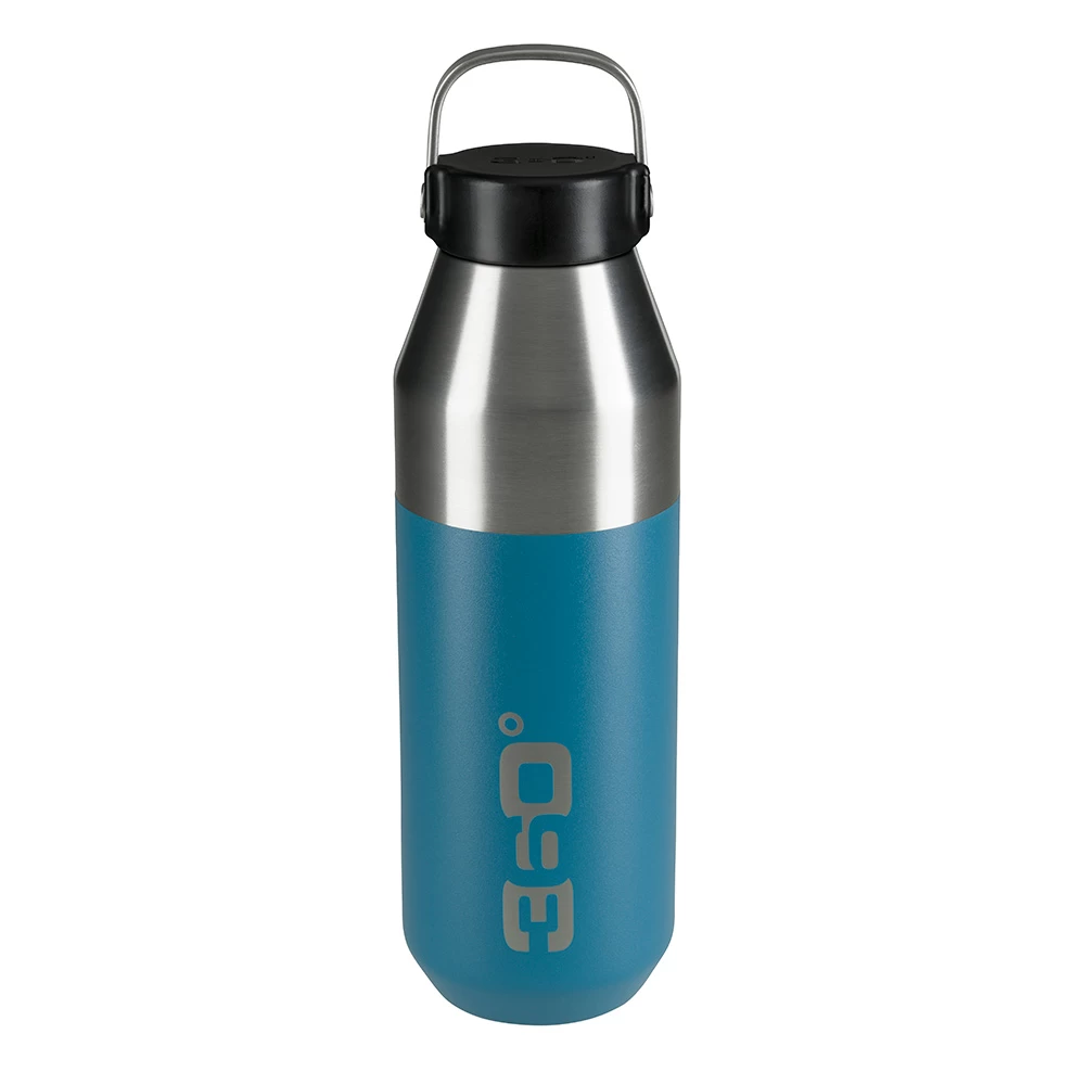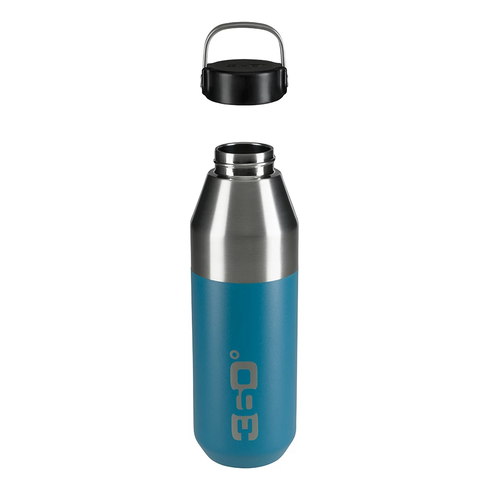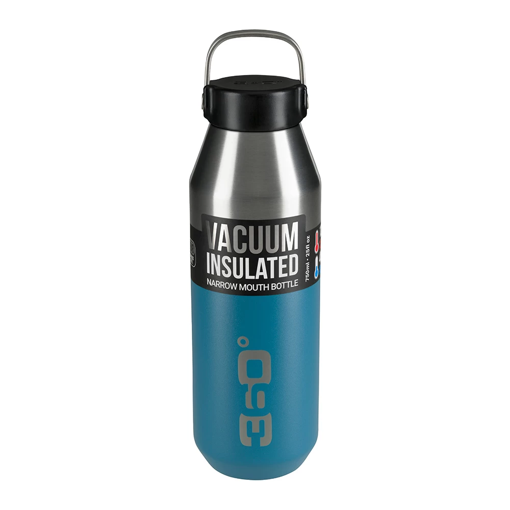 Utilising 100% high grade 18/8 stainless steel and double-wall vacuum insulation, this robust 750ml narrow mouth bottle keeps drinks cold for 48 hours and hot for 12 hours. The slimline construction enables the bottle to fit in most bike bottle holders, whilst a powder coated external paint finish provides additional grip and durability. A stainless steel handle is ideal for carrying or clipping to backpacks for convenience. Hygienic, leakproof and 100% recyclable, this 360 Degrees bottle is perfect for any active pursuit and looks fantastic in this denim colourway.