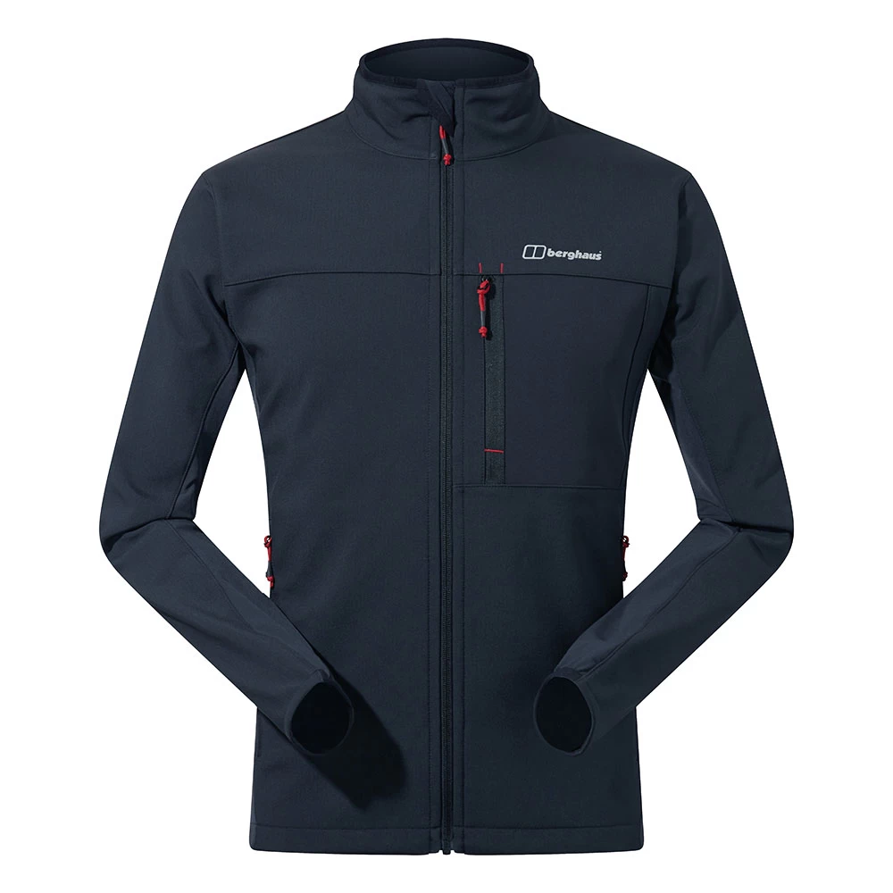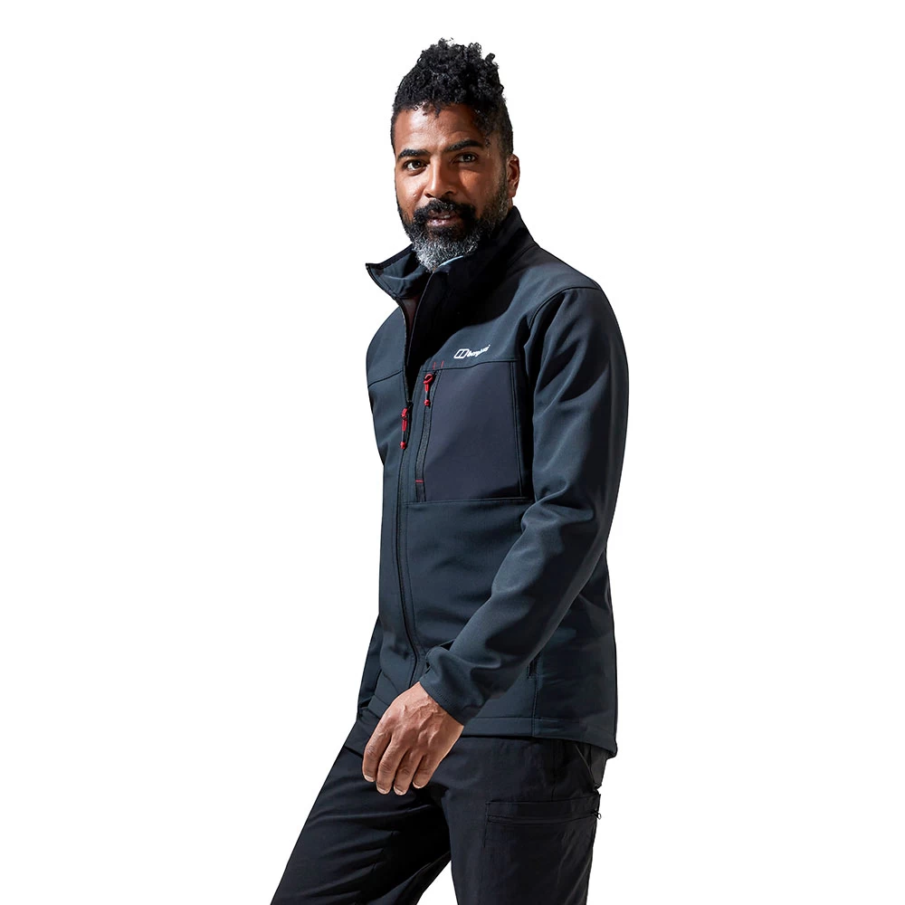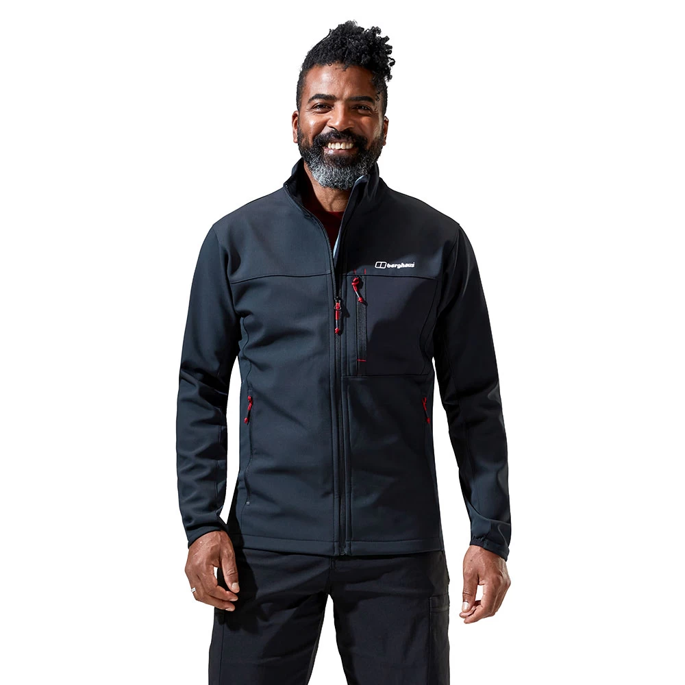 Warm and comfortable, the Ghlas 2.0 Softshell Jacket in Black from Berghaus is a firm favourite for its style, simplicity and outdoor pedigree. The softshell construction is super durable yet instantly comfortable and warm, further enhanced by the high collar for blocking wind chill. Two lower pockets and a zipped chest pocket ensure essentials are secure and hands stay warm. Finished with a stretch binding collar, drawcord hem and adjustable cuffs, the Ghlas 2.0 fits and feels perfectly.