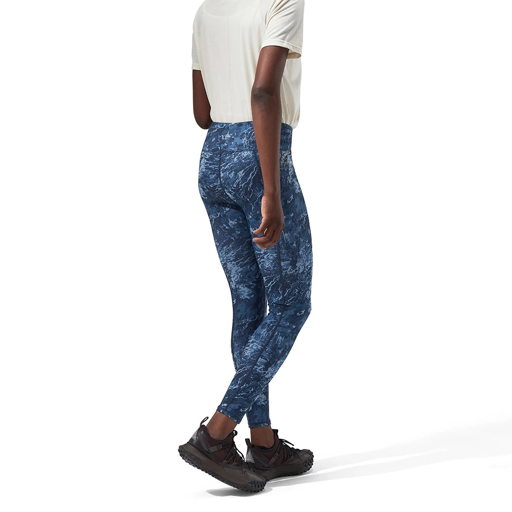 The Zannia 7/8 Leggings from Berghaus come with a four-way stretch material for optimum ease of movement and comfort. An all-over print in Cheviot Blue nods toward the breathtaking Cheviot Hills, located in the remote but beautiful Northumberland National Park. The body-hugging design features one thigh pocket for convenient storage of your essentials. Excellent for everyday use, walking, hitting the trails or just lounging in.