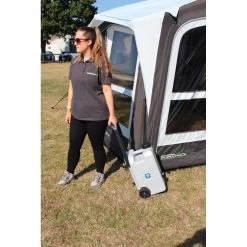 Manufactured in food-grade plastic, this Aqua Caddie 25L is a large capacity transportable water container ideal for transporting drinking water, or can be used for grey wastewater if required. Integral wheels and a telescopic pull-out handle feature for ease of mobility. Ideal for Camping, Catering and Equine activities.