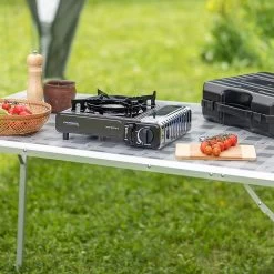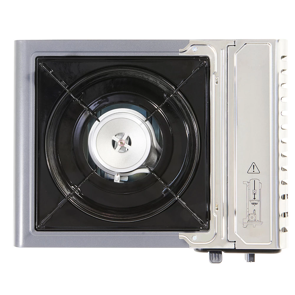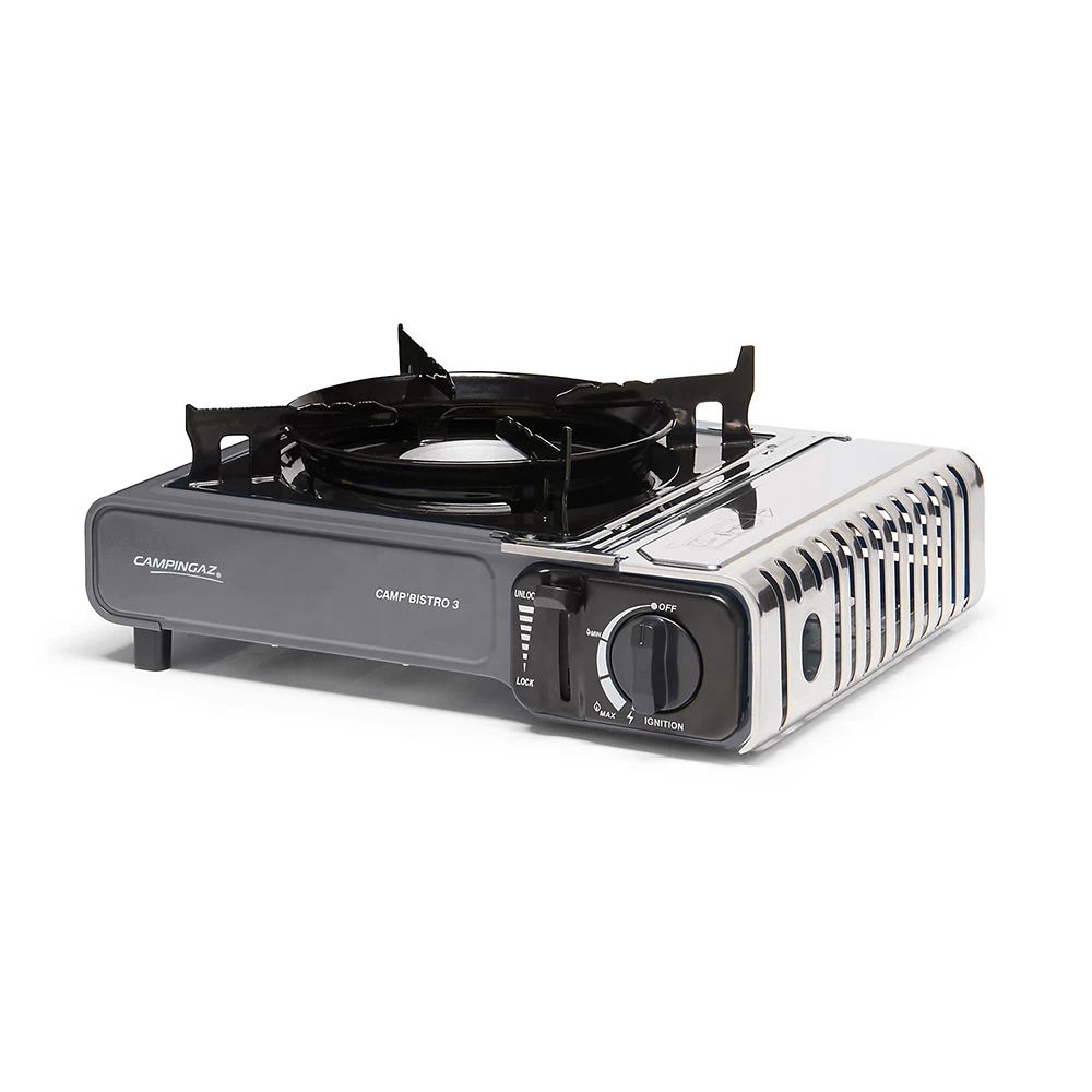 Simple, portable and easy to use, this superb Bistro 3 Stove from Campingaz features convenient piezo ignition and fully adjustable power. Safety features include two gas safety mechanisms; one cutting the gas flow and one allowing the cartridge to be ejected when not in use. The pan support continues to be fixed in place ensuring it cannot be removed and incorrectly repositioned, whilst also raised to prevent a larger pan from protruding over the gas cartridge compartment. The Bistro 3 can be stored in the included recycled plastic hard carry case for fantastic portability,