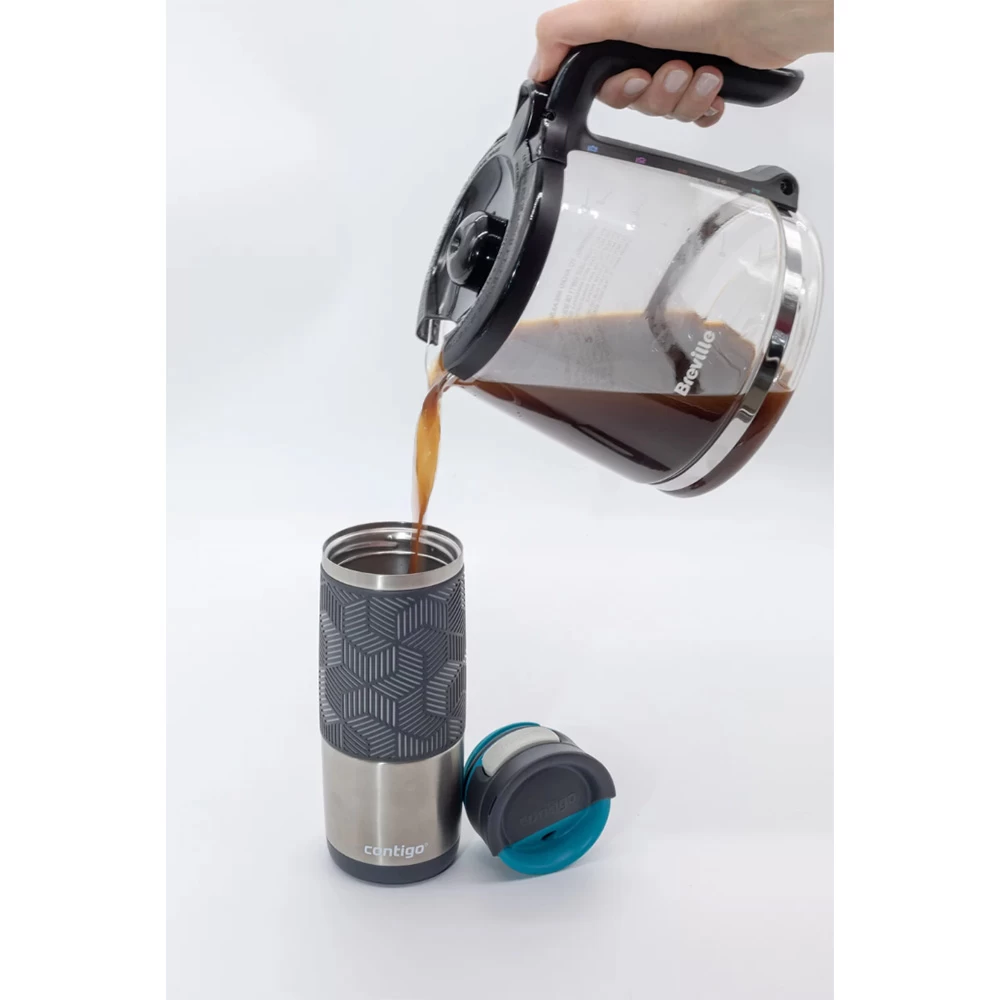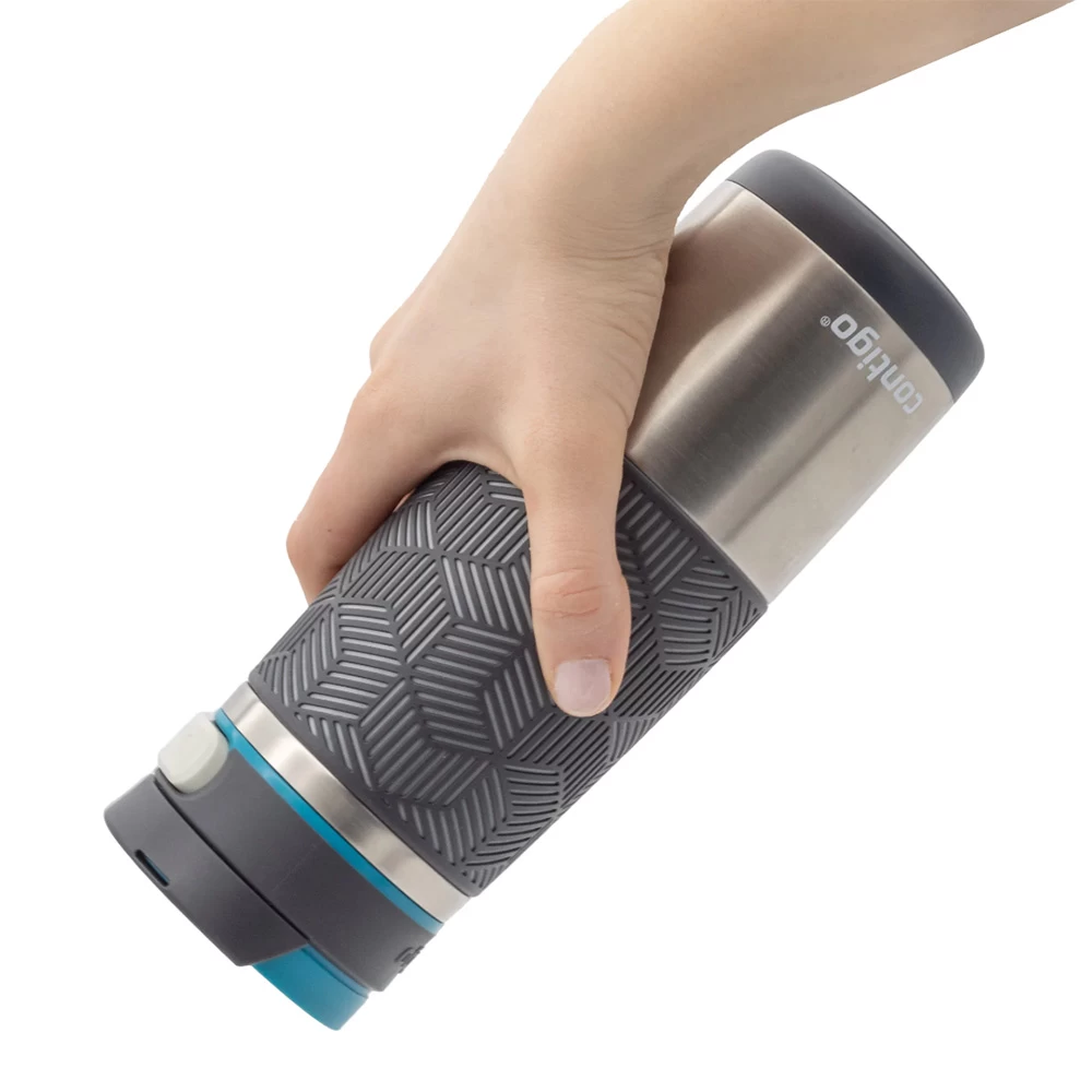 This outstanding 470ml mug is the ultimate commuter companion, boasting THERMALOCK™ vacuum insulation to keep drinks hot for up to 5 hours. Engineered to be spill-proof, the Transit AUTOSEAL Travel Mug features Contigo’s AUTOSEAL™ technology, preventing hot coffee splashes on the move. A CleanGuard™ lid helps protects the spout from germs you might meet on the bus or in the elevator, while also locking the AUTOSEAL™ button closed.