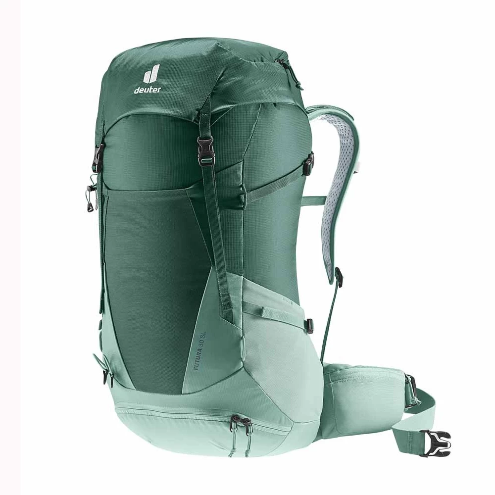 The Futura 30SL from Deuter has been designed specifically for women. Built with a shorter back, conical-shaped hip fins and narrower shoulder straps to help give a more secure and solid fit on the female body. Fitted with an Aircomfort back system to create impressive airflow across your back so you stay comfortable whilst scrambling those hills at a much faster pace. An additional stretch mesh pocket on the front is fantastic for airing out wet clothes on the go. The main material has been made from bluesign® certified materials which is much kinder to the planet, helping protect the places you love to explore. Here in the Forest / Jade colourway.