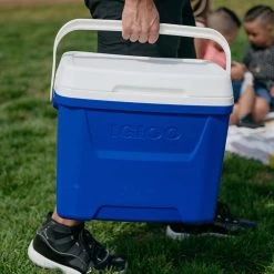 A robust cooler from Igloo featuring a useful 26 litre capacity that can hold x37 330ml cans. THERMECOOLTM – Cleaner, eco-friendly foam insulation delivers excellent performance, further enhanced by the elevated Cool Riser Technology® design. A swing-up handle allows for one-handed carrying, with the curved back side of the cooler hugging comfortably to your body for ultimate carrying comfort.