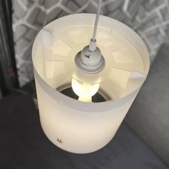 Consisting of two sides and two rings, this clever lampshade is completely flat when disassembled for a minimum pack size. This helps protect the shade during transport for quick and easy assembly during setup. Make your awning a home.