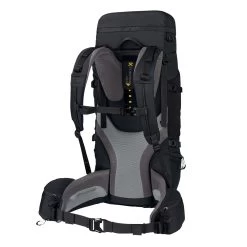 The Highland Trail 55+5 Rucksack from Jack Wolfskin is perfect for multi-day hikes and treks. It is made from recycled materials and equipped with the height-adjustable X-TRANSITION back system. The system is extremely comfortable, delivers good back ventilation and makes carrying heavy loads surprisingly easy. The lid pocket has an extra-long zip and opens up wide so you can find what you need quickly. You can carry your water bottle in the holster on the waist belt, the main compartment can be accessed from the top or via the front zip. Here in the Phantom colourway.