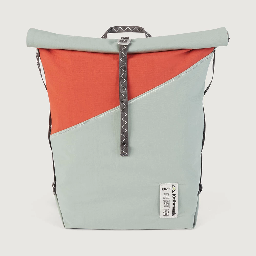 Perfect for the modern, urban adventurer the 16L Ruck-Roll Bag from Kathmandu is perfect for all walks of life. A padded back panel and adjustable shoulder straps make for a personalised, comfortable fit. Internally the 16L storage features a notebook sleeve for laptop security. The easy-to-use roll-top closure allows for ease of use whilst the recycled fabric construction is kind to the planet. Here in the Gum Tree / Red Earth colourway.