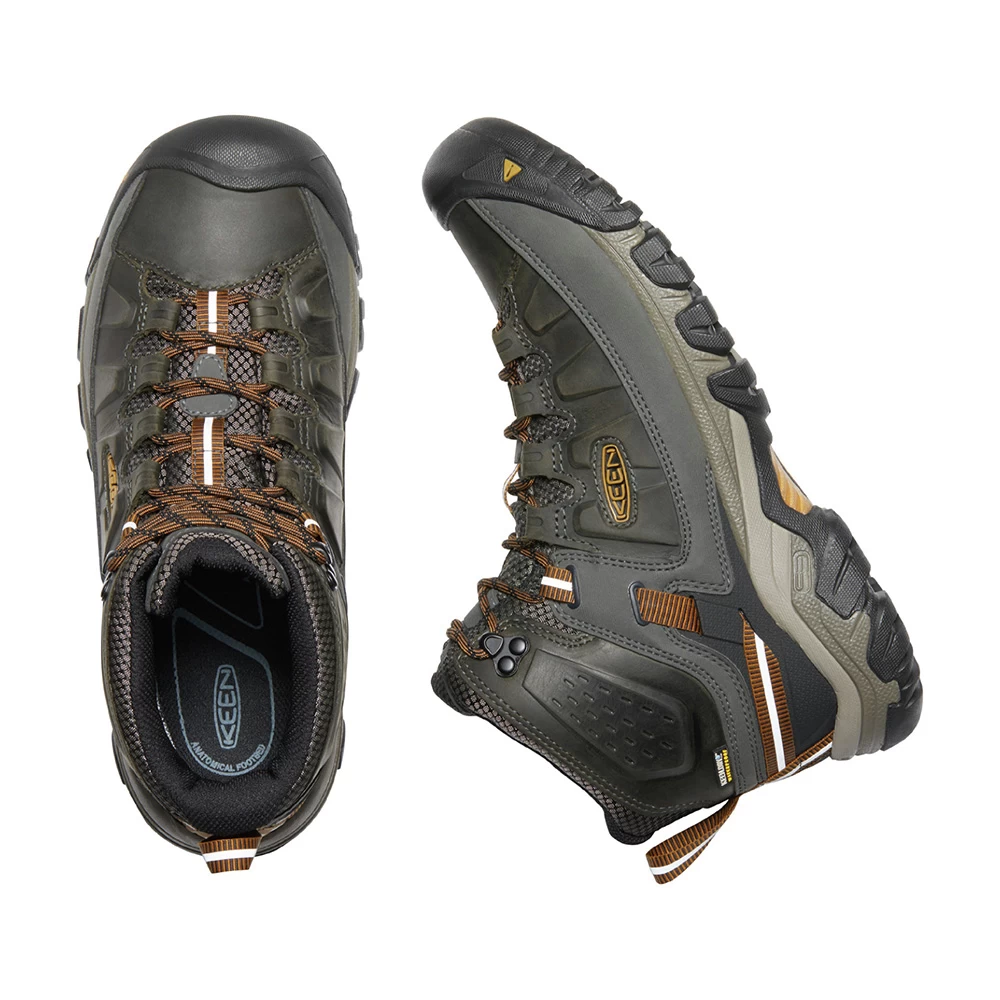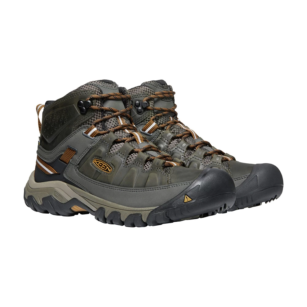 Taking performance and rugged looks to a new level, the black olive Targhee III Waterproof Hiking Boots from Keen feature an excellent fit and enhanced durability, coupled with the latest technology. KEEN DRY technology allows vapour out without letting water in to ensure your feet remain comfortable and dry for the duration of your hike. Arch support is provided by the Metatomical Footbed Design cradling the natural contours of the foot, whilst a KEEN All-Terrain rubber outsole features 4mm multi-directional lugs for higher-traction grip – perfect for all-terrain adventures.