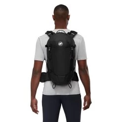 Compact, light and full of features. The Lithium 25L Rucksack from Mammut has been constructed mainly from recycled fabrics with a PFC-Free water-repellent treatment. Made with very lightweight and breathable shoulder padding makes it an extremely comfortable rucksack to carry with you on your trails while the air channels in the 3D EVA foam provide additional ventilation. Fitted with a padded hip belt that can be removed if you don’t need it, it also has a fold-out pocket to keep your phone in, so it is always close to hand when you’re out trekking. Here in the Black colourway.
