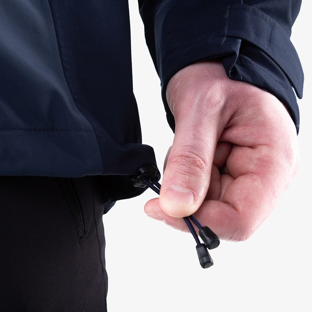 - Adjustable laminated cuffs and dual tether hem drawcords.