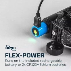 Featuring flex power, this low-profile compact 1500 lumen headlamp can be powered by the included rechargeable battery or 2 x CR123A batteries. 5 light modes range from Turbo to Red COB operated via top-positioned power and mode selection buttons. An adjustable head strap makes for comfortable fitment, whilst the Einstein flex weighs in at a mere 45g. ABS plastic makes for a durable construction and the Flex is water-resistant (IPX4).