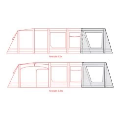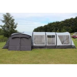 Considerably extending the front of your Outdoor Revolution Airedale 6.0S / 6.0SE Air Tent, this front porch extension zips onto the front porch area, creating a more usable enclosed utility space. Large windows feature zipped curtains for added privacy and offer stunning views of the outdoors, whilst the versatile multi-position front door panel opens up to give a relaxing alfresco dining or chilling space.