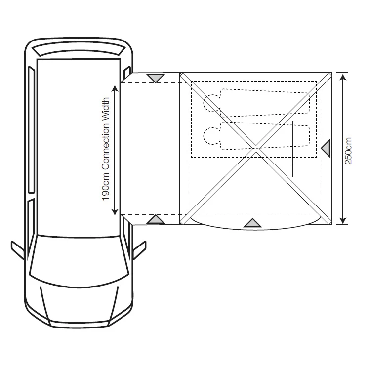 - Integral, vehicle front-facing eyebrow canopy with fibreglass pole – ideal for wet weather entry.