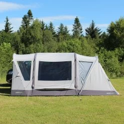 This versatile accessory fits to either end of the Outdoor Revolution Cayman Combo PC Air Drive Away Awning for 2022, delivering the option to enclose the front or rear of your awning, providing more internal living space. Featuring the same high-quality fabric, this porch door accessory is a seamless match, neatly zipping into place and with a secure toggle connection system. The porch door can be fully or partially zipped back to suit your preference and an optional Cayman porch extension cabin 2 berth inner tent can be used in conjunction to increase sleeping accommodation by two. In the case of the Cayman Combo PC Air, an optional porch door accessory can be used at each end, increasing sleeping provision by four persons for the ultimate setup.