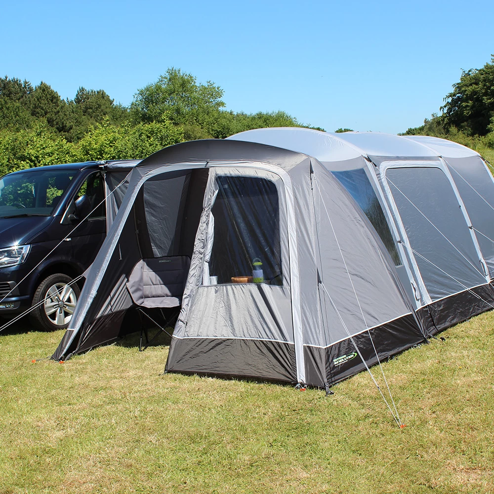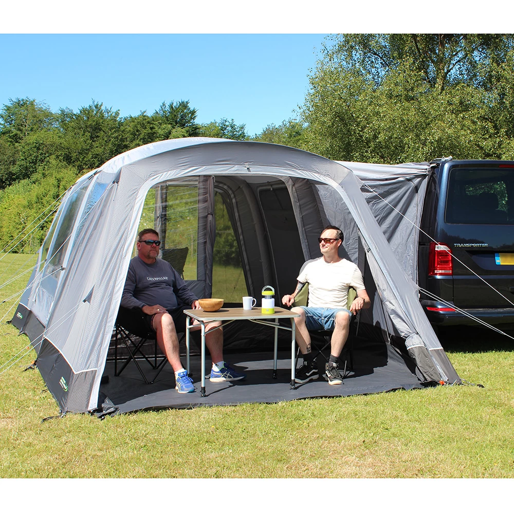 This versatile accessory fits a number of Outdoor Revolution Cayman Drive Away Awnings for 2022, delivering the option to enclose the front of the awning, providing more internal living space. Featuring the same high-quality fabric, this porch door accessory is a seamless match, neatly zipping into place and with a secure toggle connection system. The porch door can be fully or partially zipped back to suit your preference and an optional Cayman porch extension cabin 2 berth inner tent can be used in conjunction to increase sleeping accommodation by two. In the case of the Cayman Combo Air, an optional porch door accessory can be used at each end for the ultimate setup.