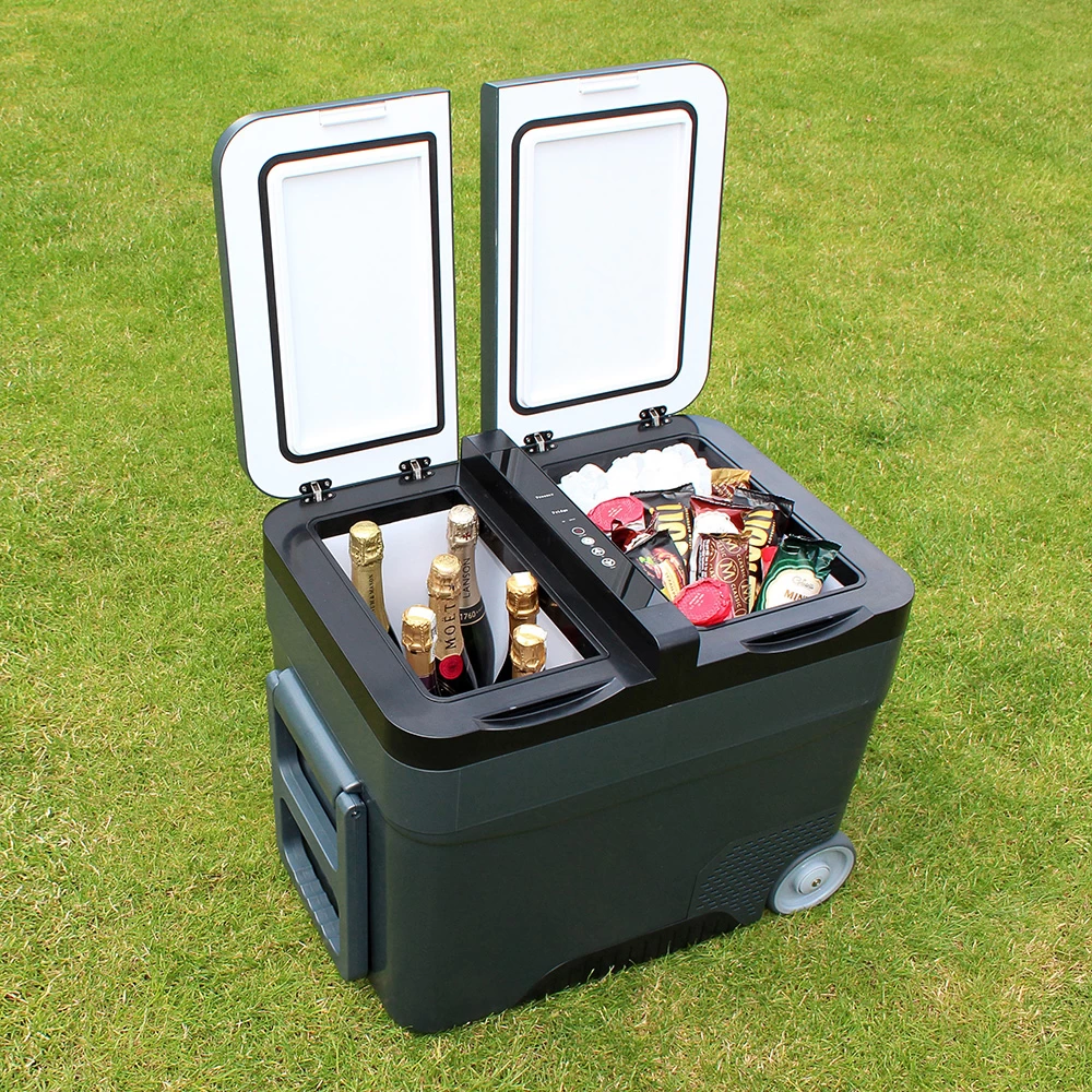 Ideally suited to leisure automotive and camping applications, this fantastic larger twin compartment compact compressor cooler & freezer features a gernerous 45 litre capacity. With an option to precool in the home before travel or on the campsite via a 230V adaptor with both UK and EU Plugs, the cooler offers versatility to ensure your food and beverage stay fresh. An LED touch digital control panel compliments the contemporary aesthetics, whilst wheels and ergonomic handle make for great portability.