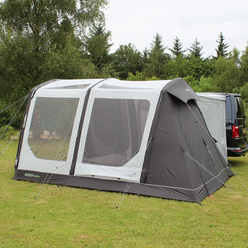 Retaining its drive-away capability and featuring an attachment height of 255 – 305cm, the Movelite T3 AIr Motorhome Awing offers reassuring quality and performance, encompassing Outdoor Revolution’s technical lightweight 240HDE polyester fabric for hard-wearing weather protection and a full and innovative feature list. The versatility and scope for usage of the T3E is second to none, with several optional accessories allowing multiple configuration options to suit your needs, including expanding outdoor living space, enclosing the front of the awning or expanding sleeping provision for up to six persons with use of an optional annexe. Flexible entry and family-friendly layout combine with this popular attachment height, suitable for a wide range of larger vehicles and motorhomes. A premium choice of motorhome awning.
