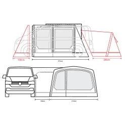 Please Note: Images show low height attachment awning. This Motorhome version of the Movelite T3 Air is the exact same awning, but with a higher attachment height of 255 – 305cm.