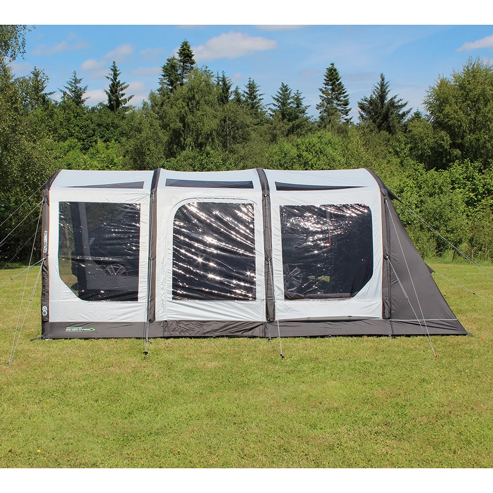 Boasting technical lightweight 240HDE polyester fabric for hard-wearing weather protection and innovative comprehensive feature list, this Movelite T4E Air Motorhome Awning offers premium and sizeable accommodation alongside your vehicle with an attachment height of 255-305cm. Quality throughout the Movelite T4E offers reassurance, with versatility and scope for usage second to none. Several optional accessories allow multiple configurations to best suit your needs, encompassing expanding outdoor living space, enclosing the front of the awning or expanding sleeping provision for up to six persons with an optional zip-on annex. This New family-friendly motorhome awning boasts fine craftsmanship, quality materials and stunning aesthetics – of the very best.