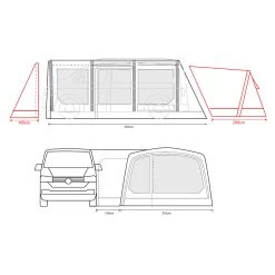 Please Note: Images show low height attachment awning. This Motorhome version of the Movelite T4E PC Air is the exact same awning, but with a higher attachment height of 255 – 305cm. Accessories shown for lifestyle illustration.