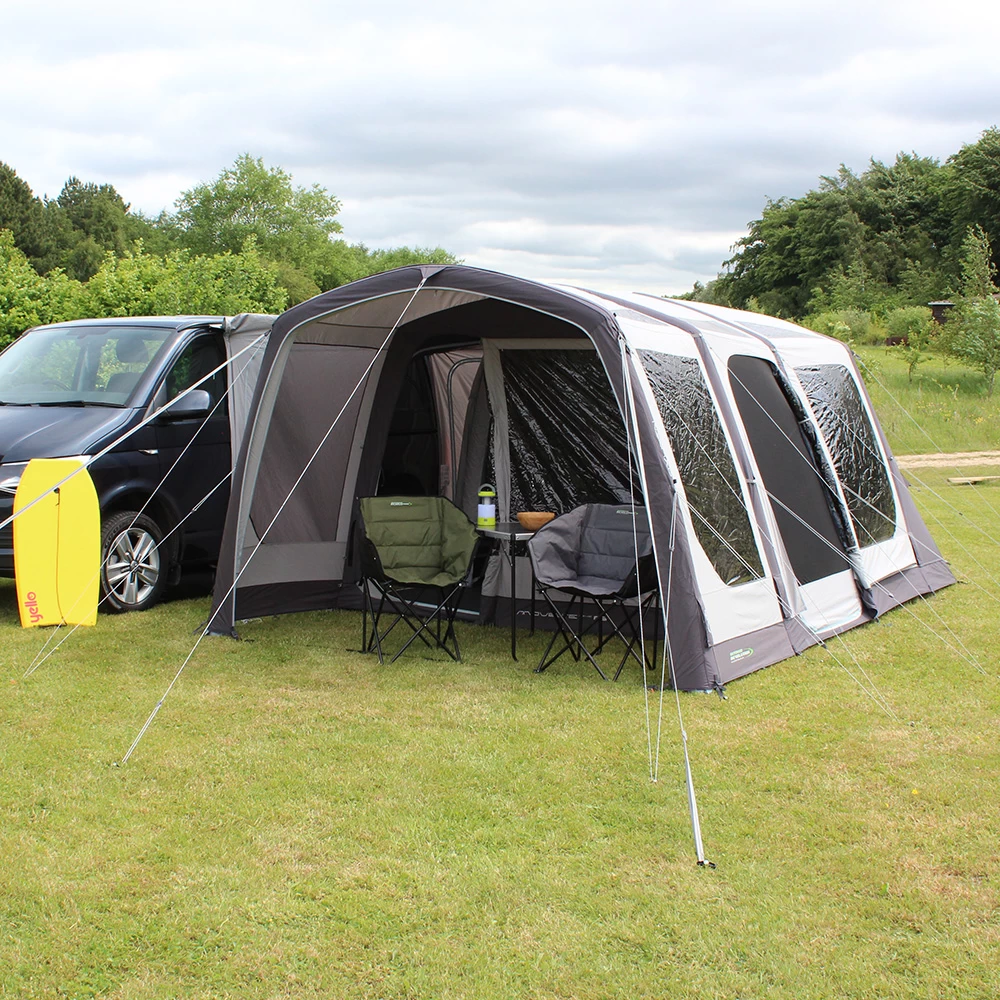 Featuring Outdoor Revolution’s luxury breathable polycotton fabric, this flagship Movelite T4E PC Air Motorhome Awning offers premium and sizeable accommodation alongside your vehicle with an attachment height of 255-305cm – the perfect family-sized drive-away motorhome awning for camping in warmer climates. Several optional accessories allow for multiple configurations to extend scope of usage to best suit your needs, encompassing expanding outdoor living space, enclosing the front of the awning or increasing sleeping provision for up to six persons with optional bedroom inners and a zip-on annexe. The discerning choice for touring warmer climates.