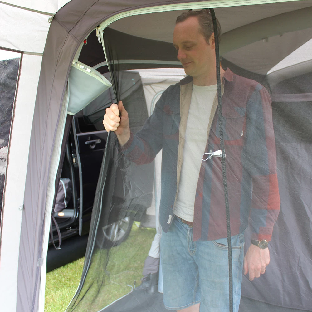 - Optional Zip on porch door & rear annexe accessory options to enclose awning front and expanding sleeping provision.