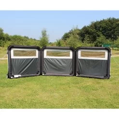 This premium quality windbreak features Outdoor Revolution’s latest 600HDE high-density all-weather premium fabric combined with the ultimate convenience of an inflatable Oxygen Air Frame. Each panel features a PVC panel to retain a view of your surroundings and are joined with a flexible hinged system enabling you to adjust the configuration of the windbreak to suit your preference. The windbreak can be extended using optional single panel extensions.