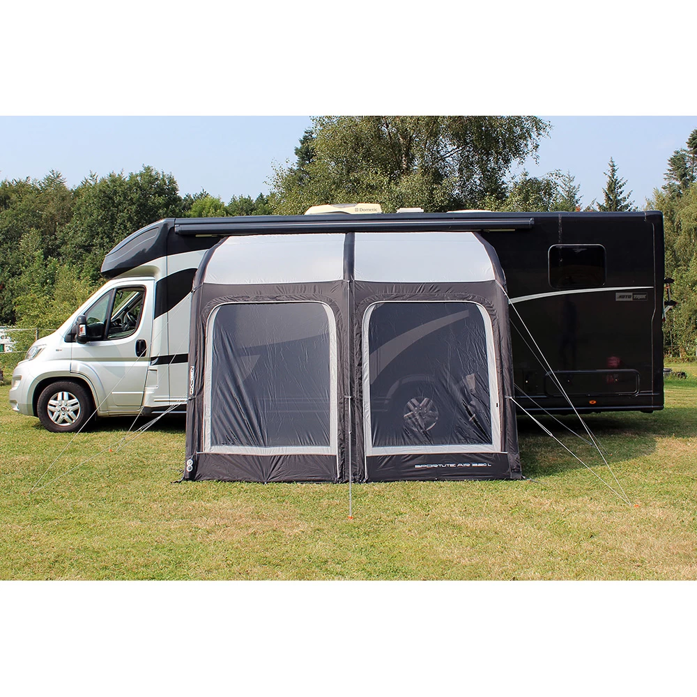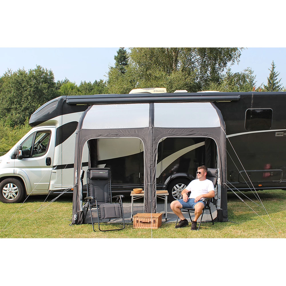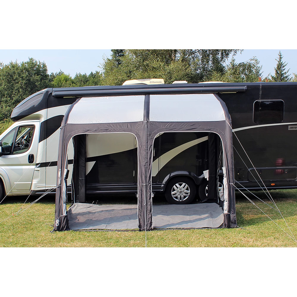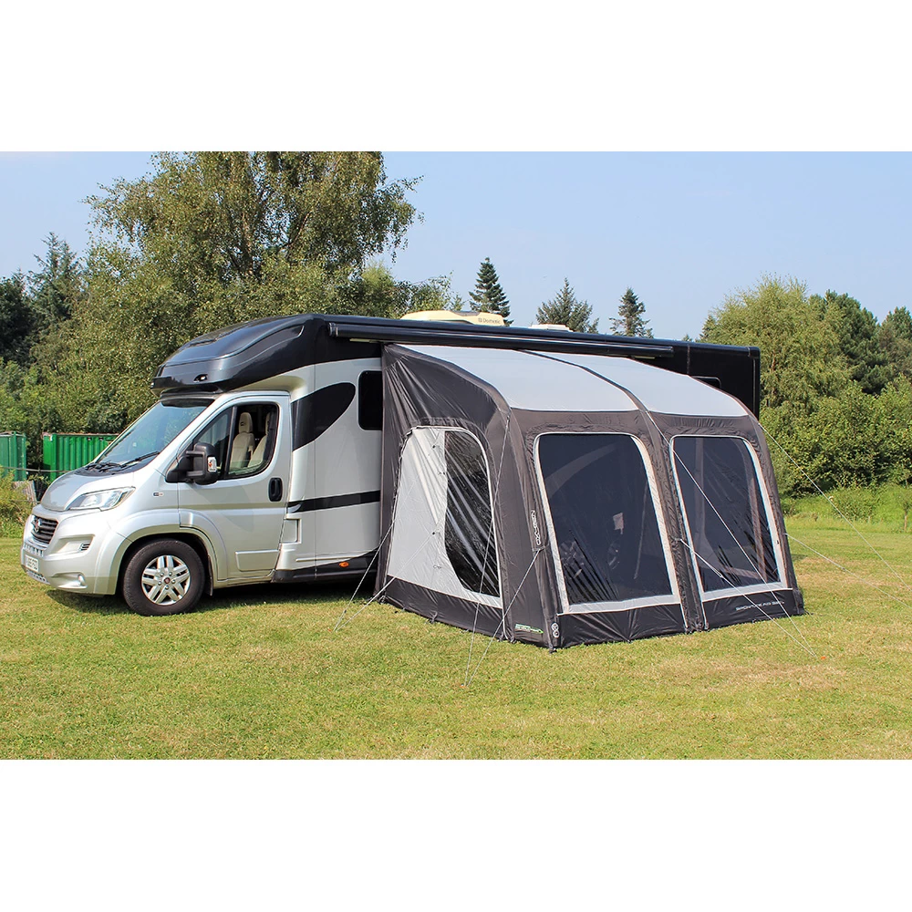 Featuring a taller 250 – 265cm attaching height, functionality, practicality and high performance are fused together in the exceptional Sportlite Air 320L Motorhome Awning from Outdoor Revolution. Contemporary 280HDE high-density all-weather fabric combines with a conveniently rapid Oxygen Air Frame system and comprehensive options list, making for the perfect touring solution for many an enthusiast.