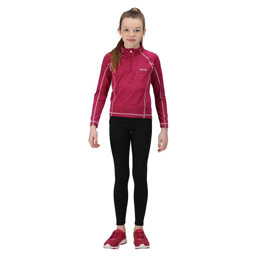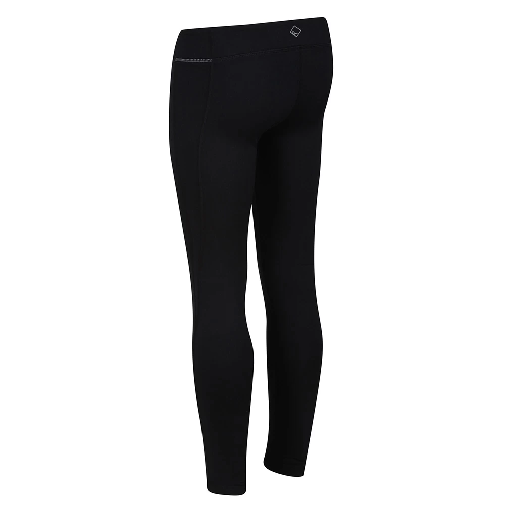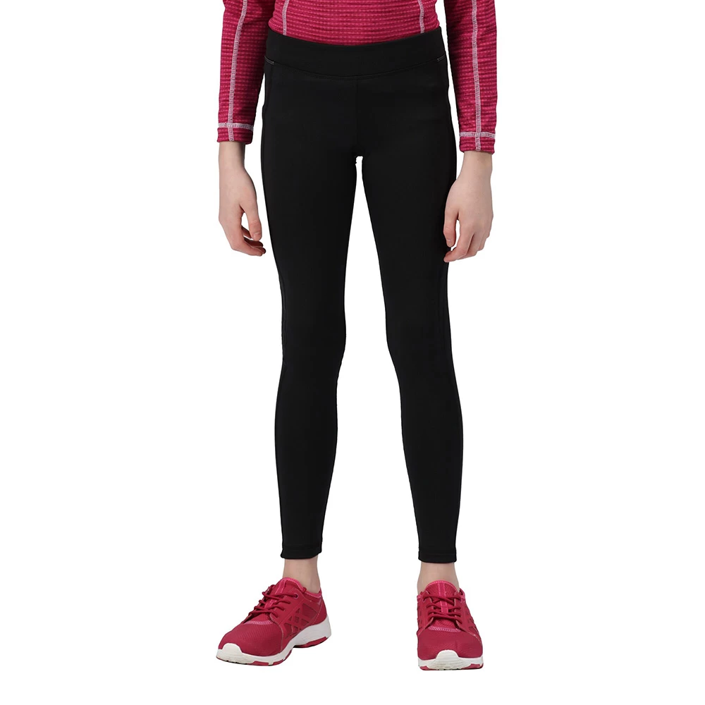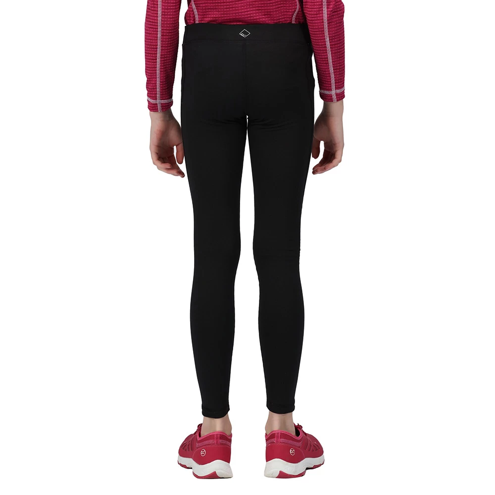 Featuring Regatta’s warm-backed stretch fabric technology, these kids’ Barila Leggings are the perfect choice for high-energy outdoor activities. A quick-drying finish will help to minimise the impact of rain, whilst providing protection from windchill. Good wicking performance from the Extol Stretch fabric will keep them comfortable when working hard, whilst the leggings are finished with reflective trim and a great-looking black colourway.