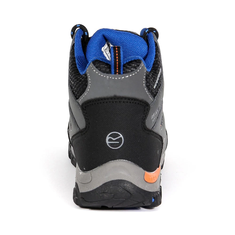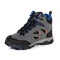Luxurious comfort, straight from the box, the Regatta Holcombe IEP Walking Boots provide a comfortable bad weather barrier for little ones. From the top down, the split mesh uppers finished with Hydropel Technology, wrapped around an ISOTEX Membrane deals with the weather with ease, ensuring little feet stay dry all season long. Underneath, an EVA footbed absorbs rocks, lumps and bumps underfoot, so hill walking and adventuring is effortless. A sturdy rubber outsole provides confidence boosting grip and traction all hike long. Looking great in this briar/blaze orange colourway.
