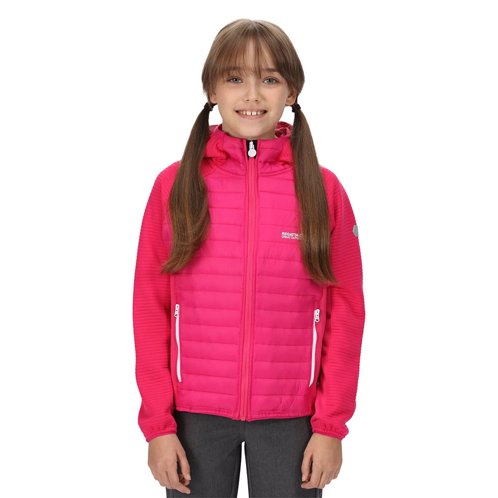 Warm, stretchy and ready for winter, the Kielder Hybrid Jacket from Regatta is perfect for young adventurers in any weather. Warm loft insulation fills the core baffles for lightweight, water repellent warmth, whilst the overall stretch fabric provides full freedom of movement. Stretch binding to the hood, cuffs and hem seals the heat in, and cold out.
