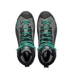 The Ribelle Lite HD Waterproof Mountain Boots from Scarpa are groundbreaking mountain walking boots, specially designed for fast-moving mountain walking and via feratta. They are next-generation when it comes to mountain hikes, designed to allow people to move faster than conventional mountain boots. Fitted with a new ARG last shape, that allows low-volume technical precision, but with a noticeable toe spring, giving you a much more natural and fluid gait. Fitted with HDry®, a highly waterproof, breathable and insulated membrane that has been laminated onto the upper inner side, there are no seams or gaps for water to get through, leaving your feet feeling comfortable and dry throughout your mountain expedition. Engineered with a Pentax Precision Roll sole which is equipped with a technical Vibram outsole with bi-density PU cushioning, giving your feet a much more natural feel and walking motion. The ultimate boots for your mountain adventures. Here in the Iron Grey / Tropical Green colourway.