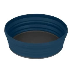 The XL-Bowl from Sea To Summit is a fantastic space-saving solution, this collapsible camping bowl folds flat for compact packing, whilst providing a large bowl size of 15cm dia. x 6cm height. The bowl is constructed using a flexible food-grade silicone bonded to a rigid, cut-resistant base made of high-temperature, food-grade nylon. A fantastic addition to your camping accessories. Here in the Navy colourway.