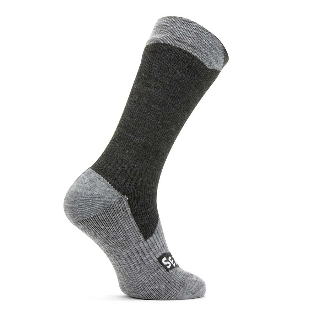 Perfect for use in a wide variety of weather conditions, these 100% waterproof mid-length socks from Sealskinz feature a three-layer construction for warmth, durability and waterproofing. A 100% waterproof hydrophilic membrane sits between a premium Merino wool interior for warmth and sweat-wicking, whilst a durable Polycolon exterior with 4-way stretch features for great fit and wearability. Feet are offered extra support and kept very comfortable with zonal elastication on the ankle, heel and instep where you need it most. There is also anti-blister technology on offer, with hand-linked flat-toe seams helping to prevent rubbing. Comfort is further enhanced with a merino wool lining for moisture control and insulation with a close fit offering a four-way stretch. Additional footbed padding reduces pressure and absorbs shock.
