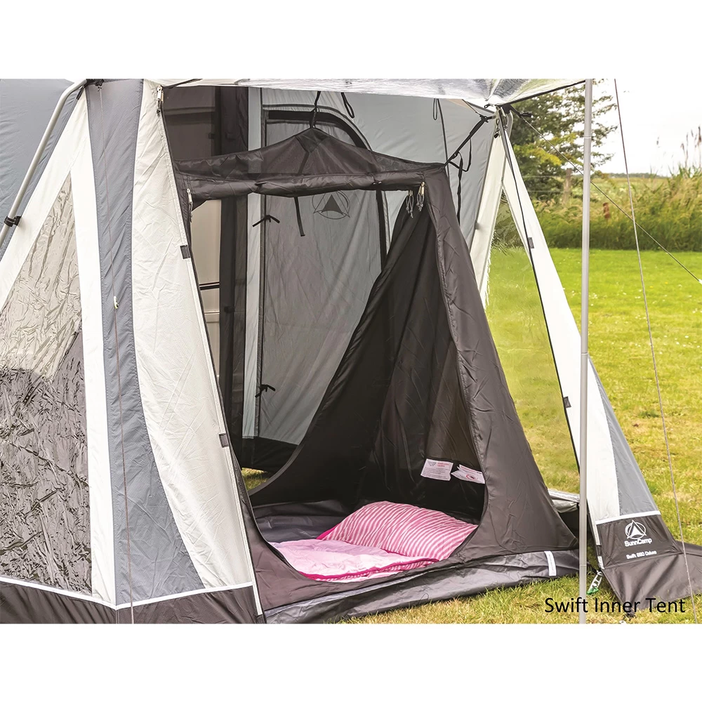 Please Note: Lifestyle images show optional canopy poles, optional side canopy, 2 berth inner tent and roof liner for fitment and feature illustration (all not included).