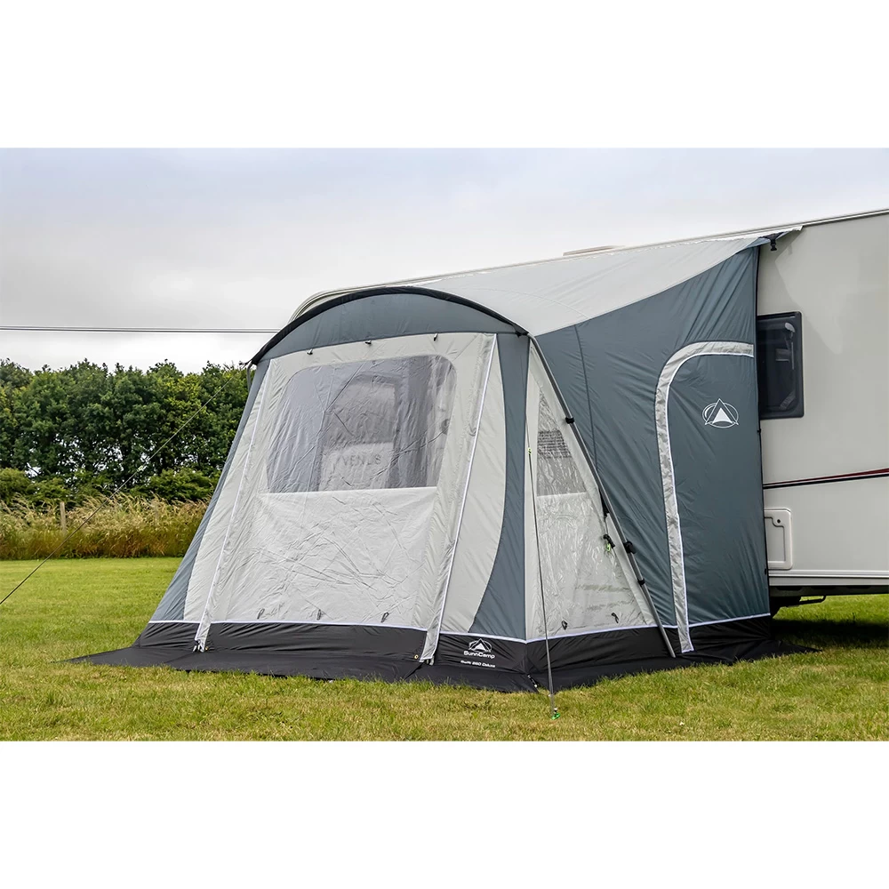 Please Note: Caravan Awning Only. Canopy poles, side sun canopy, inner tent, roof lining and carpet shown in lifestyle images for fitment and availability illustration and are not included.