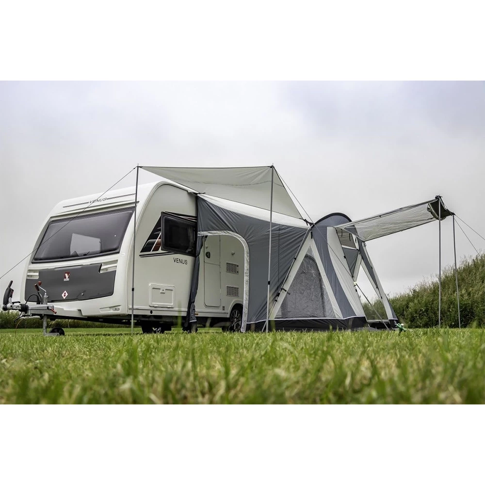Please Note: Caravan Awning Only. Canopy poles, side sun canopy, inner tent, roof lining and carpet shown in lifestyle images for fitment and feature illustration and are not included.