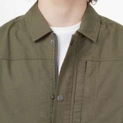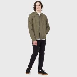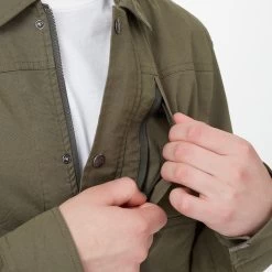 Retro look canvas work jacket is pure workwear chic. The Canvas Jacket from Tentree has been constructed with recycled YKK NATULON ®Zip front and a snap placket that keeps the wind out, while snap-close cuffs, welt hand pockets and zip chest pocket keep things simple yet practical. The stretch properties of this canvas jacket will help you maintain your full freedom of movement and helps towards keeping you feeling comfortable in the jacket. Here in the Olive Night Green.