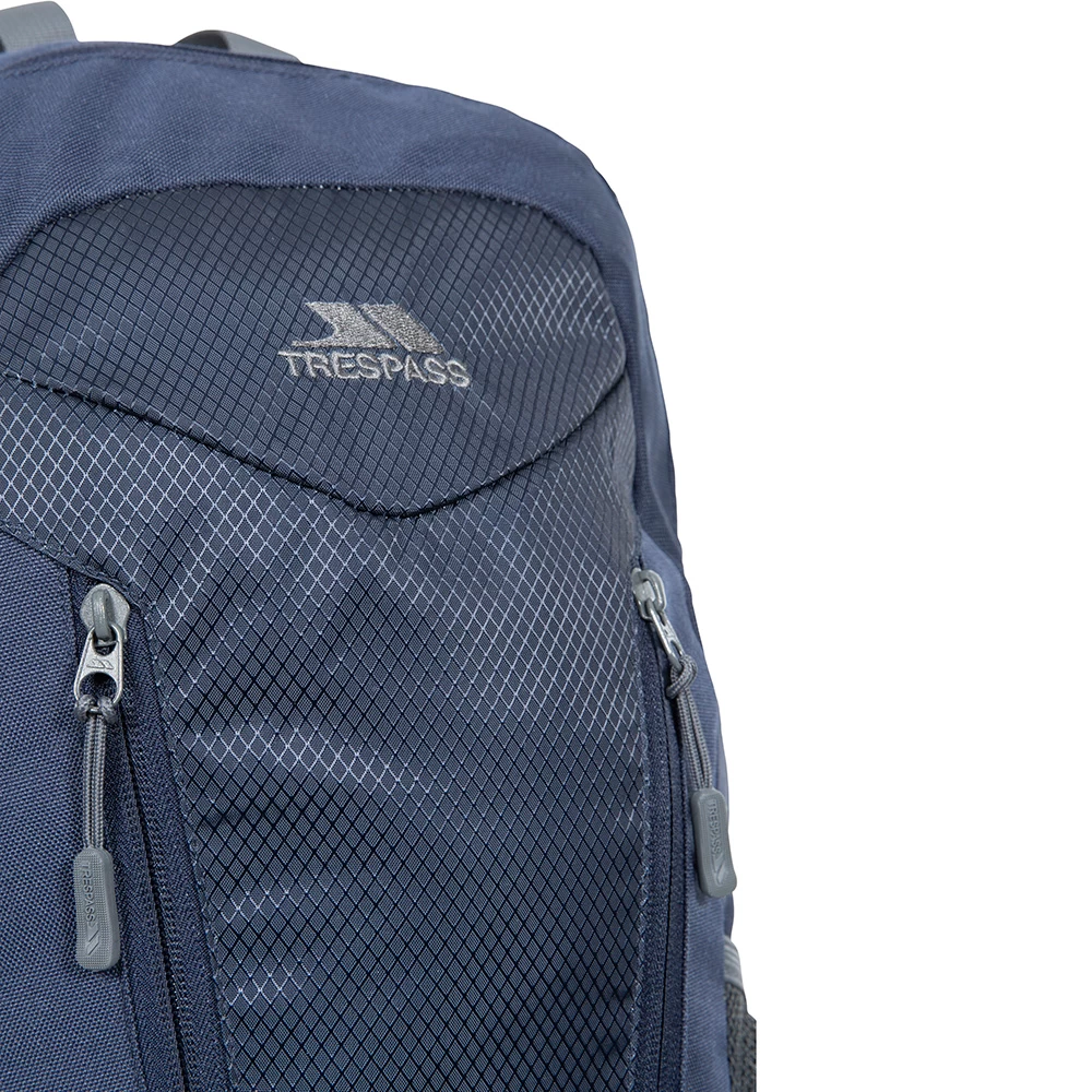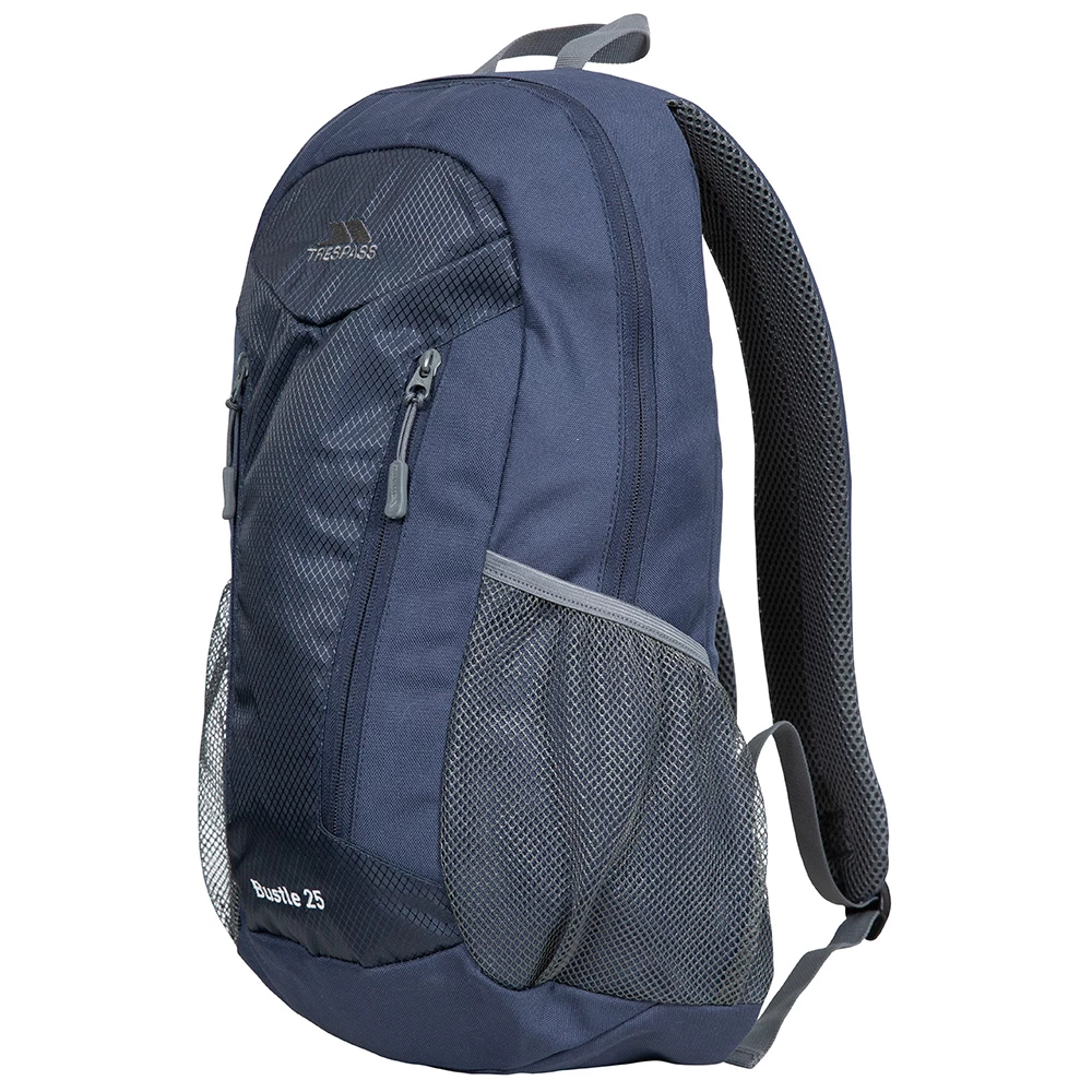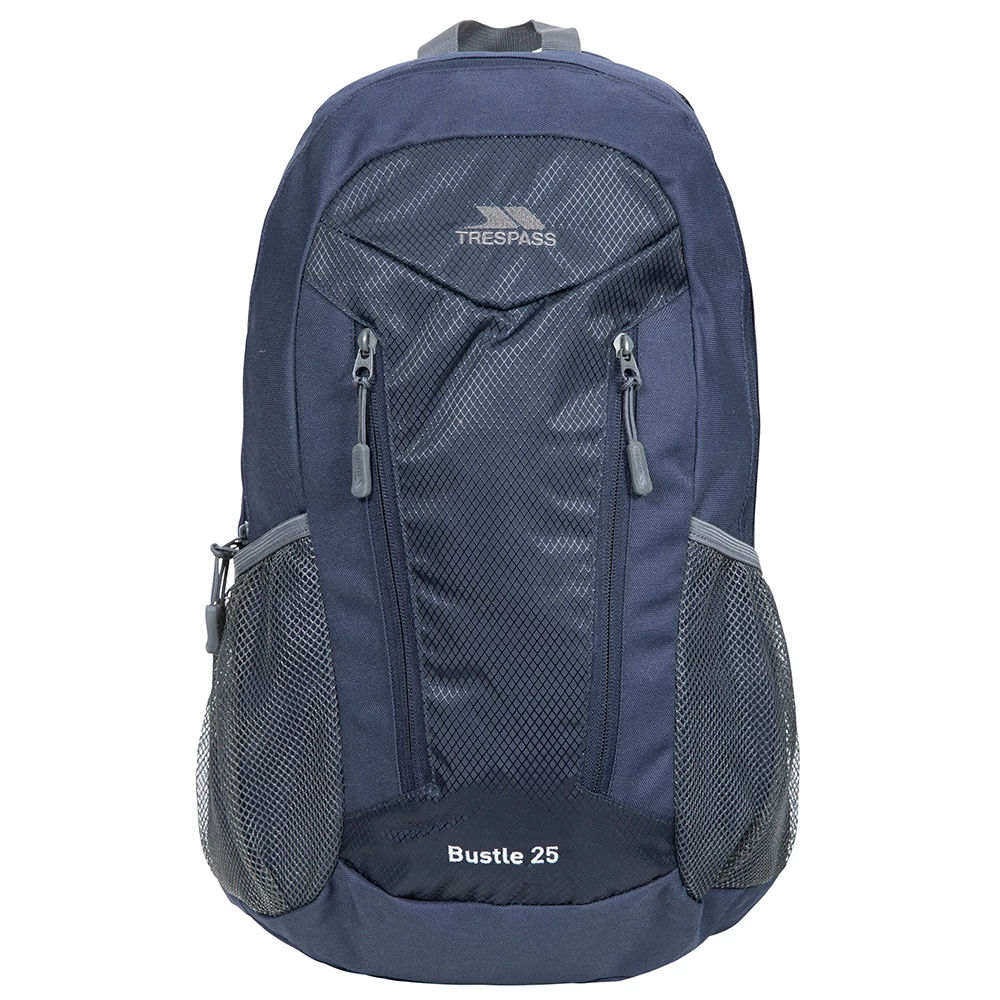 Feature packed and versatile, the Bustle 25L Backpack from Trespass here in navy boasts a 600D polyester fabric composition for a sharp aesthetic and some great storage options. Three zipped compartments, an internal laptop pocket and mesh side pockets offer great practicality on the move whilst adjustable padded shoulder straps and back make for added comfort and support. Security is enhanced with a dual-zip design for use with a suitable padlock (not included) and the Bustle 25 is finished with a grab handle at the top for multiway transportation.