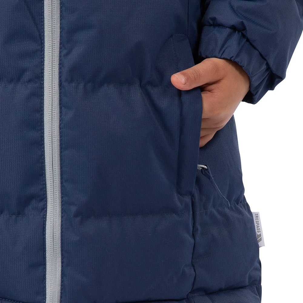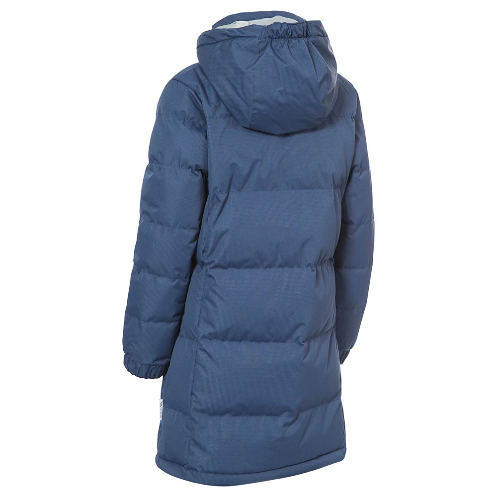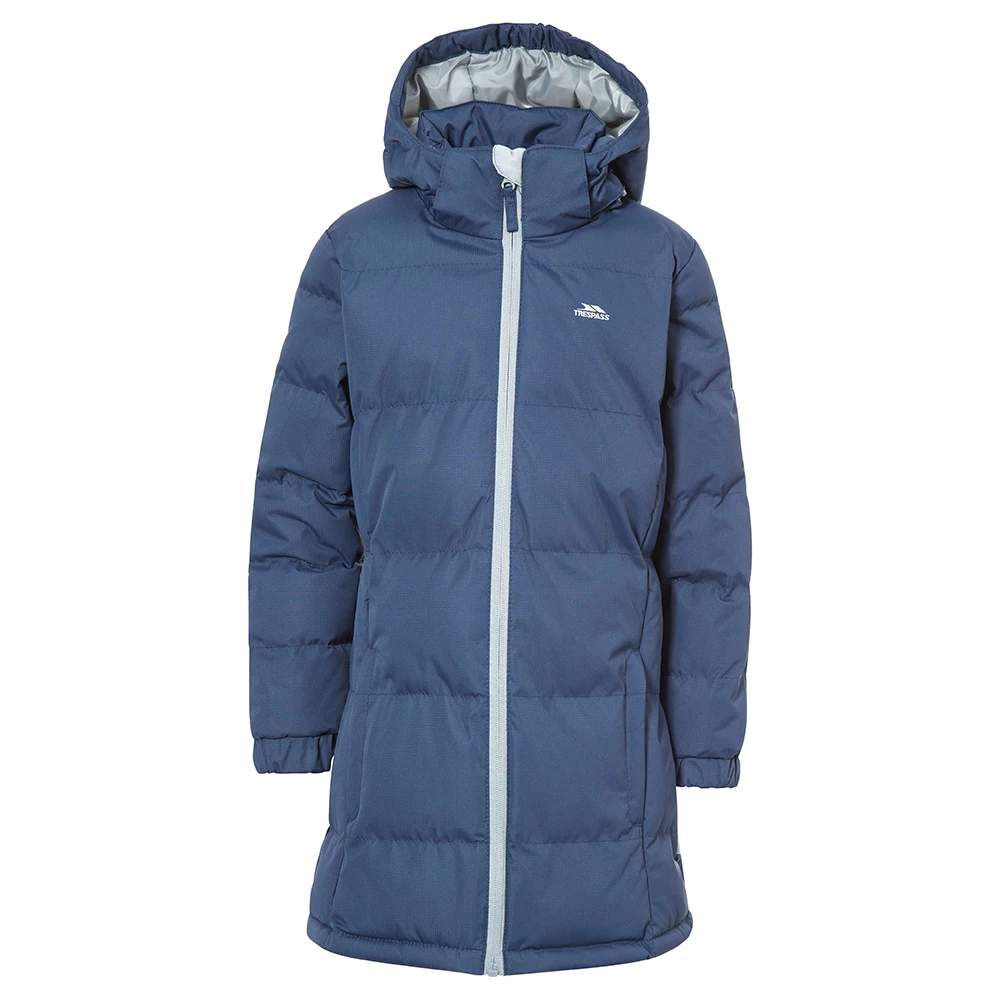 The Tiffy girl’s padded jacket looks fantastic in this navy tone colourway, keeps your little girl warm and can be worn for a variety of activities. Whether it is walking to school in the morning or exploring the local park, this jacket will provide protection from chilly winds. Cut in a long length, the jacket has padded insulation and zip off hood that work together to make sure that the weather won’t be a problem. The quilted style of this jacket is very pretty, which your little girl will love, plus the contrast full-length zip and small embroidered logo stand out against the block colour.