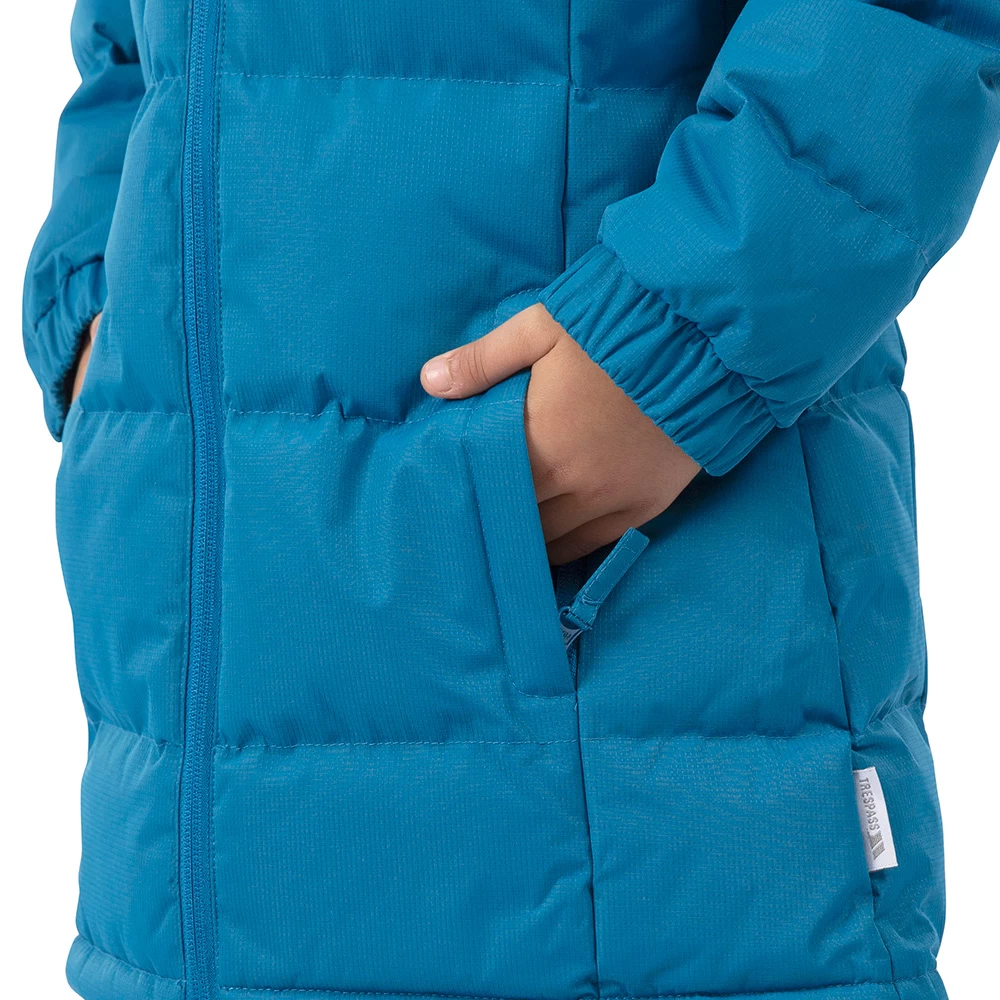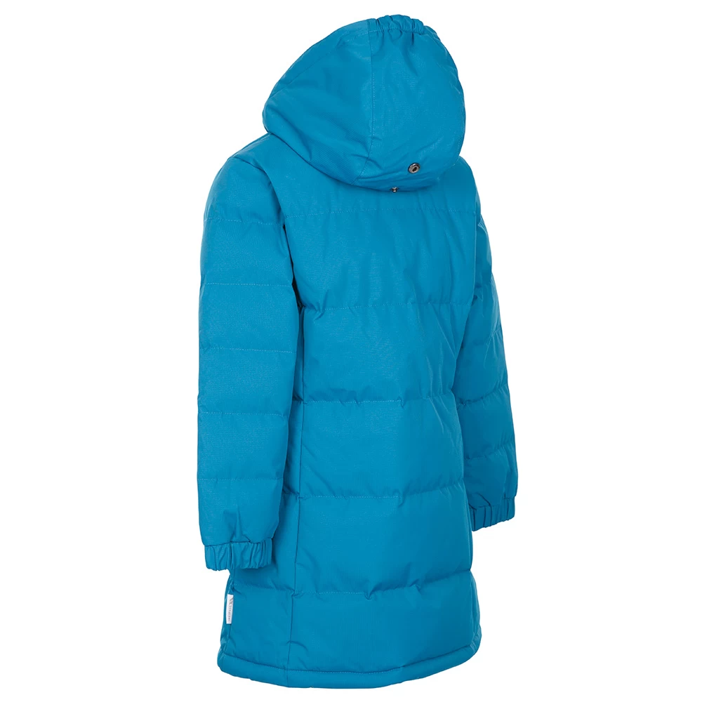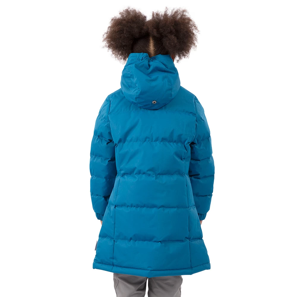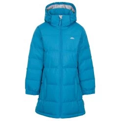 The Tiffy girl’s padded jacket looks fantastic in this rich teal colourway, keeps your little girl warm and can be worn for a variety of activities. Whether it is walking to school in the morning or exploring the local park, this jacket will provide protection from chilly winds. Cut in a long length, the jacket has padded insulation and zip off hood that work together to make sure that the weather won’t be a problem. The quilted style of this jacket is very pretty, which your little girl will love, plus the contrast full-length zip and small embroidered logo stand out against the block colour.