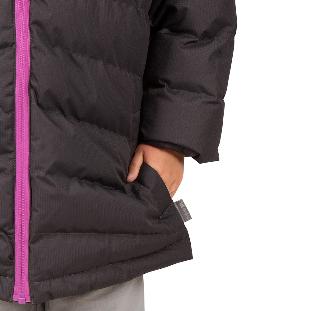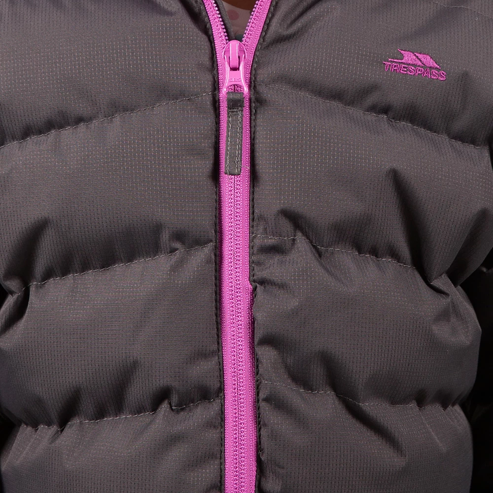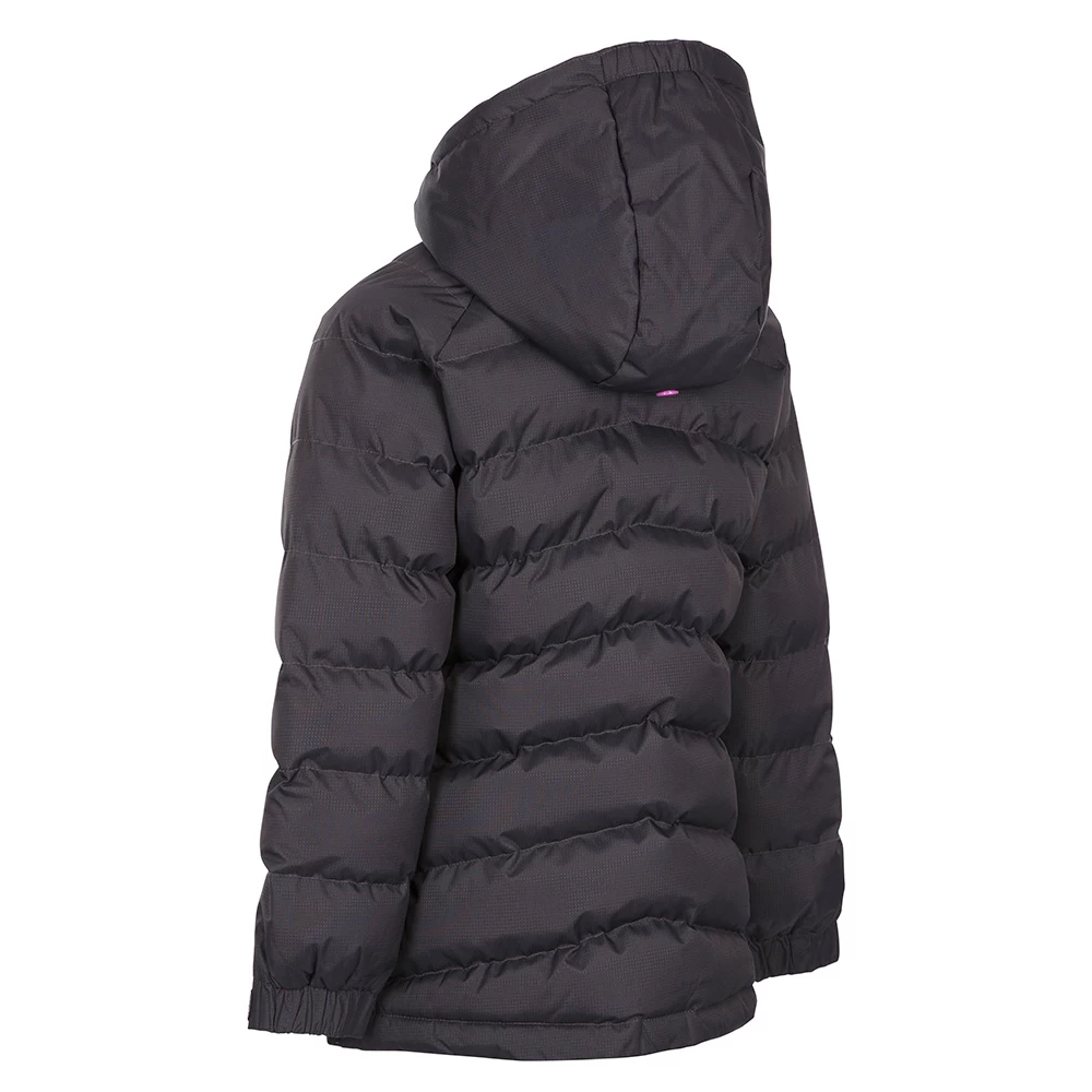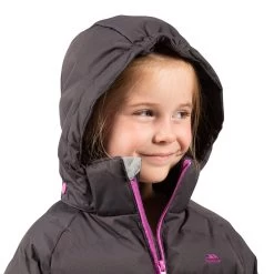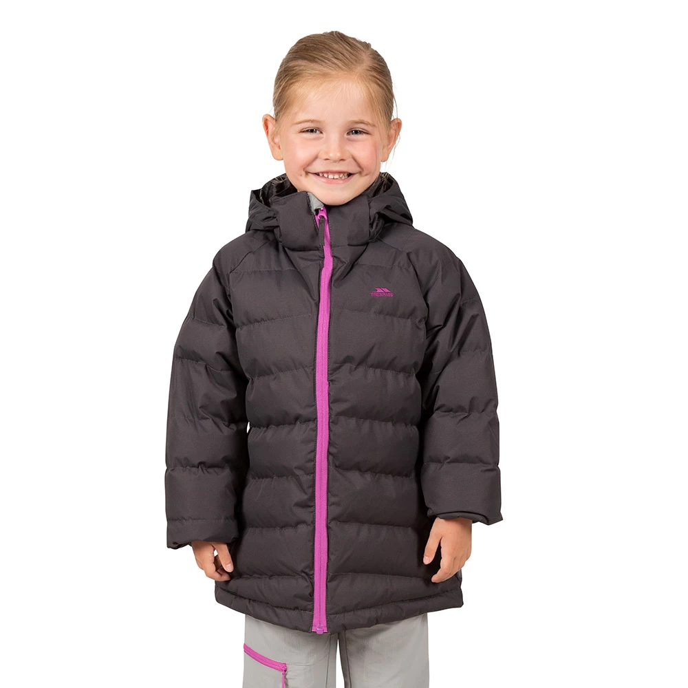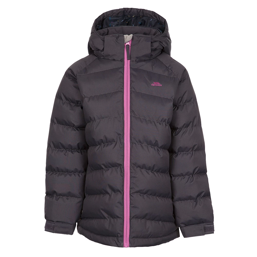 In addition to coldheat insulation, the kids Amira Jacket is completely windproof, keeping them warm and comfortable on their adventure. Constructed from a waterproof fabric that provides up to 2,000mm of waterproof protection, the Amira will easily tackle the odd rain shower. A detachable stud-fastened hood offers further coverage and can be removed when not required, whilst adjustable cuffs with Velcro fastenings provide fitment adjustment. Finished with a contrast front zip fastening and subtle Trespass chest logo, this stylish jacket in dark grey colourway is a great choice this season.