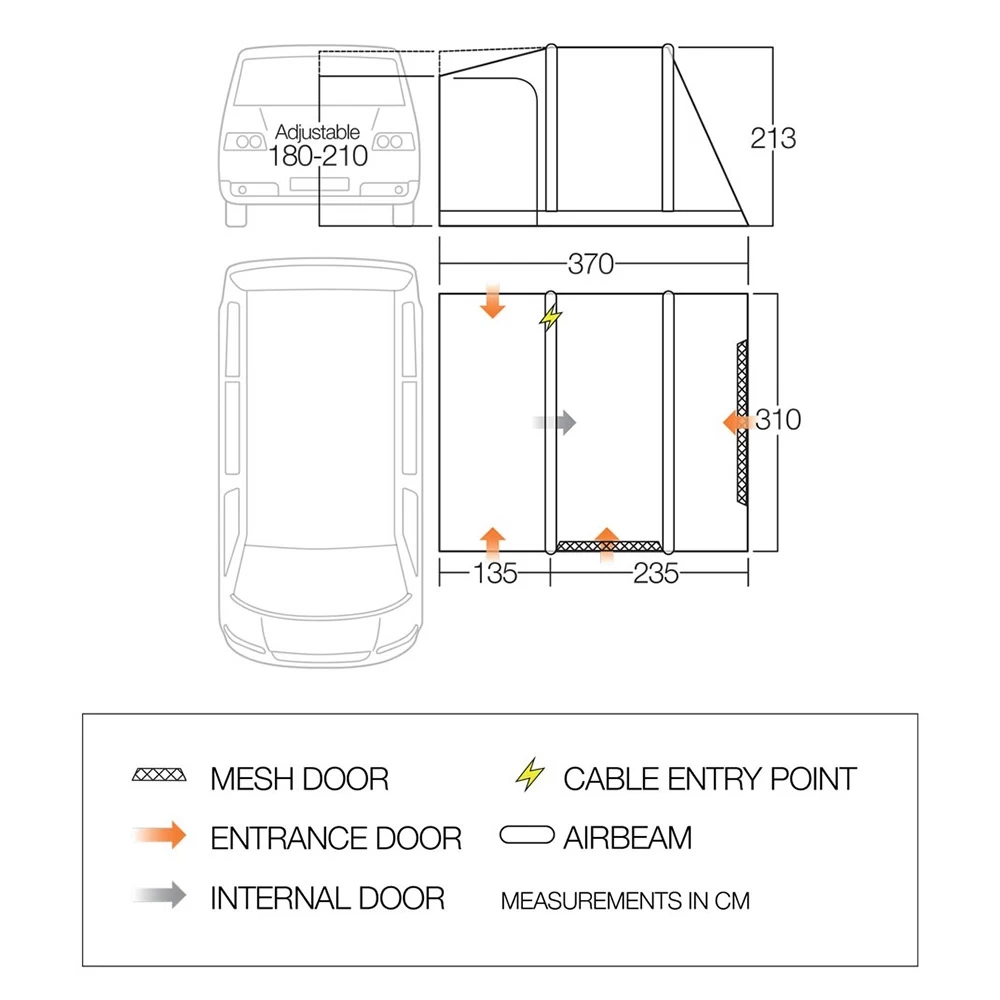 Effortless pitching, quality fabrics and practicality throughout make the Kela V Air Drive Away Awning a versatile choice, with great scope of usage. Modern prerequisite features include ambience enhancing roof SkyLights, Vango’s excellent SkyTrack® II flexible hanging system and a cable entry point, allowing you to tailor the awning to your specific needs. A superb drive away awning, the Kela V will be there at the end of the day for you to relax and enjoy the view – whatever your adventure.
