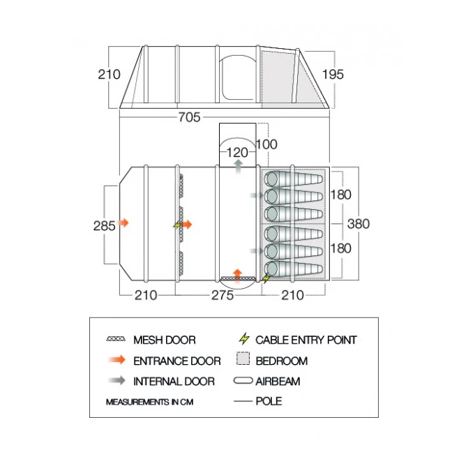 - Zipped Inner Divider – offers greater privacy between inner bedrooms. Roll away when not required.